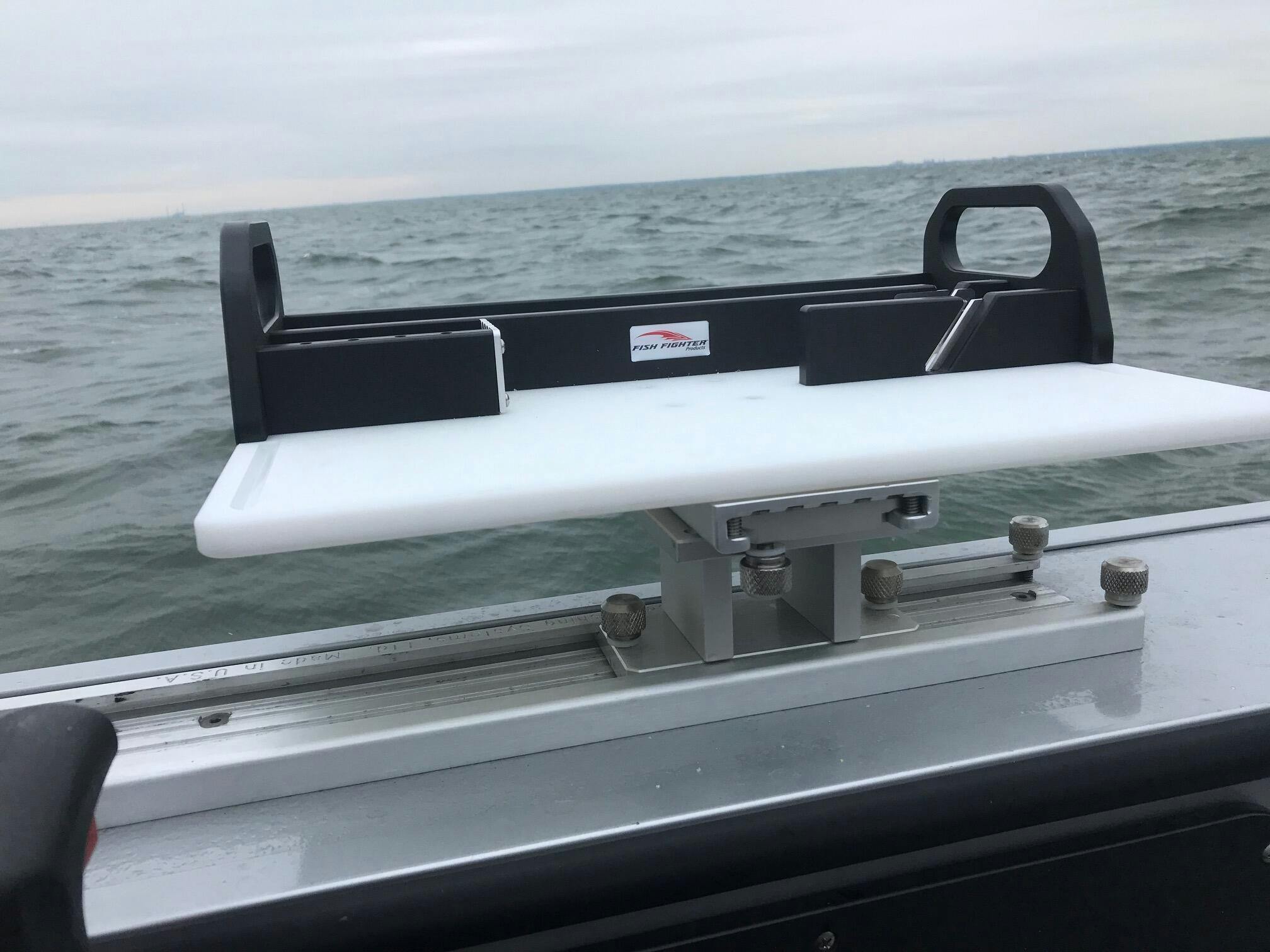 Every angler that has ever used the Fish Fighter™ Bait Board has said it is a complete game-changer, and a must-have for anyone serious about fishing with baits. No more trying to find your plug cutter, cutting board, thread, or knives. We incorporated everything into an all-in-one design. We started with an extremely tough cutting board as the base with a machined drip groove, so bait juices won't run off. Built-in carry handles make it easy to move the bait board with everything in it. Storage areas for your knives, magic thread, and bait sauces will always be right where you need them. We didn't stop there; We also designed a built-in plug cutter so you can get that perfect roll on your cut herring. But Wait, there's more! We also drilled holes, so you can hang any of those extra hooks that may be floating around while prepping bait. Here's another well-built Fish Fighter® product that is destined to be in your family for generations to come.